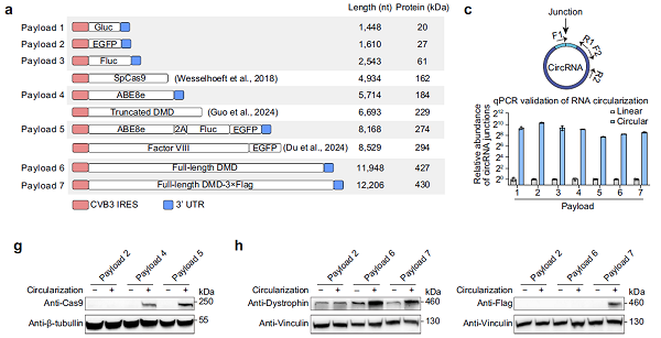 利用CIRC技術(shù),研究團(tuán)隊(duì)成功環(huán)化了編碼全長肌營養(yǎng)不良蛋白(約 12,206 個(gè)核苷酸)的 RNA,并實(shí)現(xiàn)了 427 KDa 蛋白的完整表達(dá)。這一重大突破,徹底打破了環(huán)化 RNA 編碼蛋白大小的限制,為大分子量蛋白缺失相關(guān)疾病的治療開辟了全新路徑。